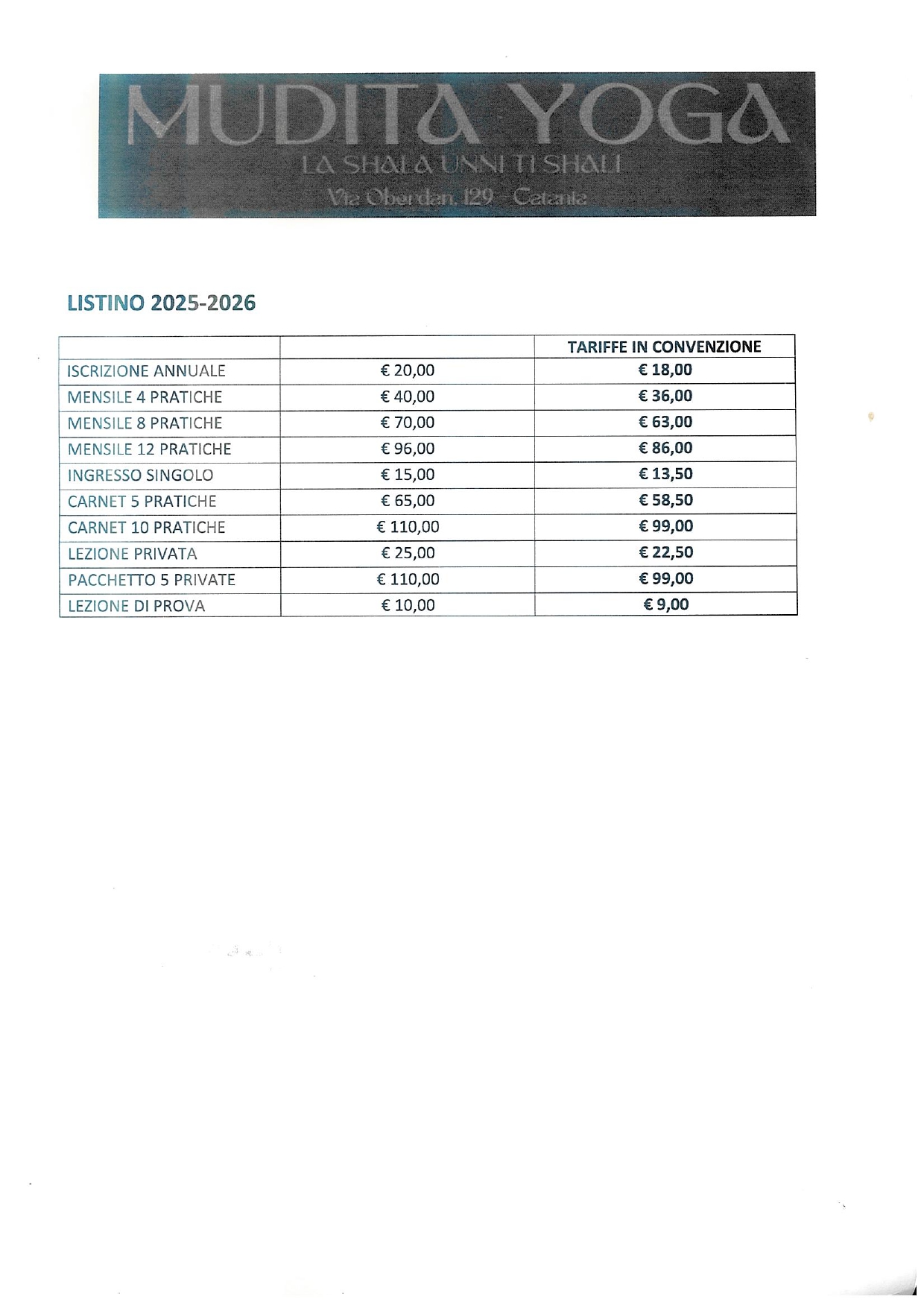MUDITA YOGA Pubblicato il 1 Ottobre 20251 Ottobre 2025 di Sanfratello Antonino MUDITA YOGA Via Oberdan 129 Catania, offre agli iscritti UIL uno sconto del 10% sul listino prezzi. Francesca Vocca – Istruttrice Certificata CONI e Yoga Alliance Responsabile Centro Mudita Yoga – ASD ATHAME +39 3400765505 lotus.blakelake@gmail.com Convenzione Listino prezzi Condividi Pubblicato in Convenzioni, Fitness, Tempo libero.